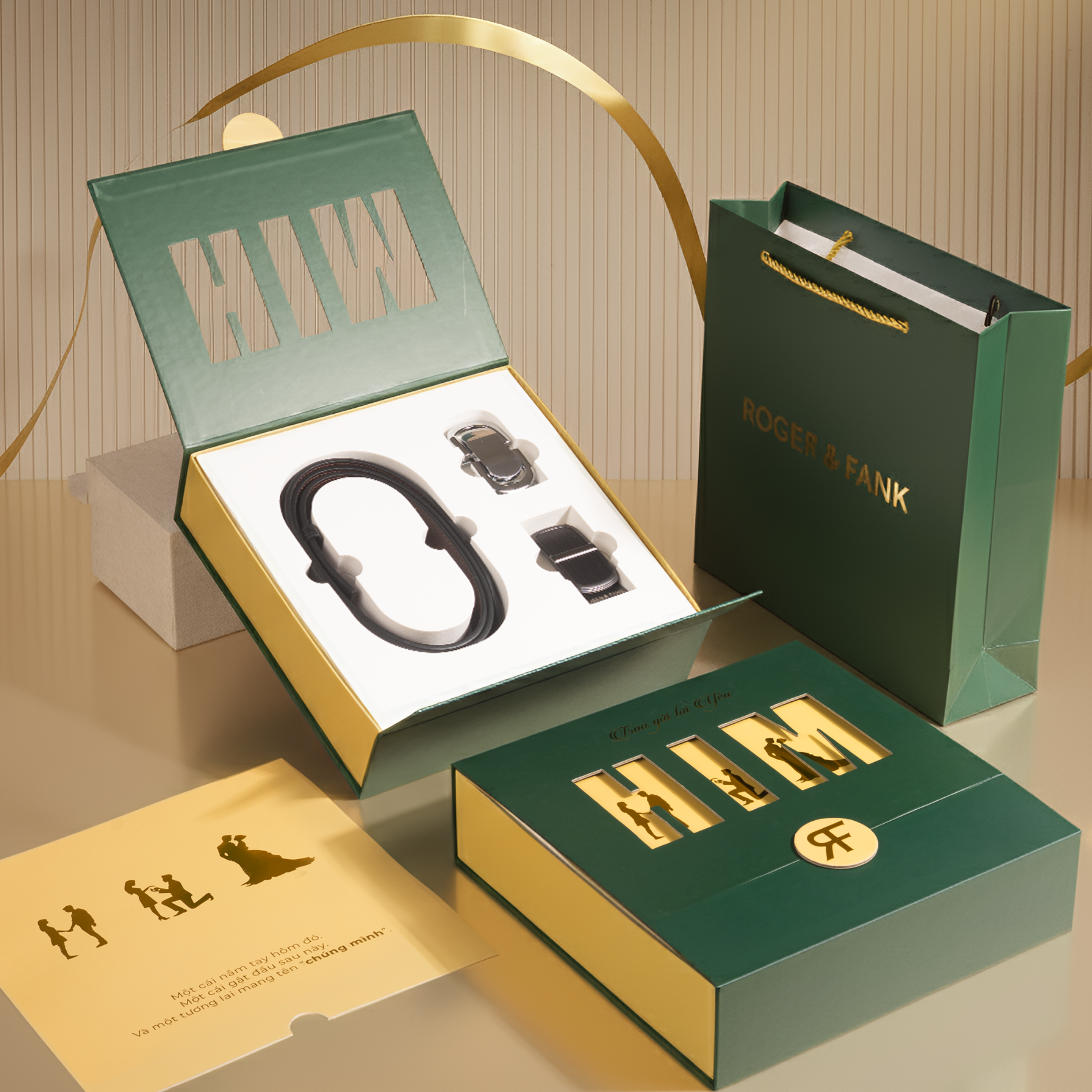 Bộ set quà tặng HIM, DAD là sự giao thoa giữa thiết kế tối giản và giá trị cảm xúc. Lấy cảm hứng từ triết lý “less but better”, bảng màu xanh trầm kết hợp ánh kim gold tạo nên cảm giác điềm tĩnh, vững vàng và chiều sâu của thời gian.