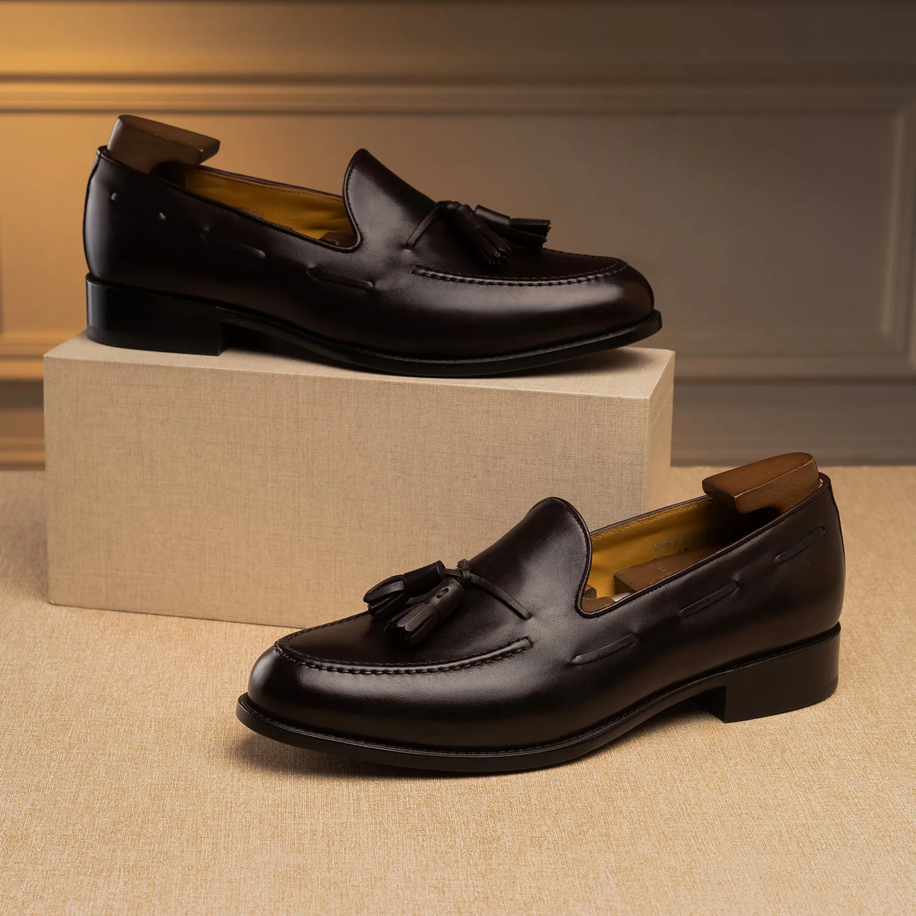Dark BrownGiày da cao cấp tassel loafer LF094