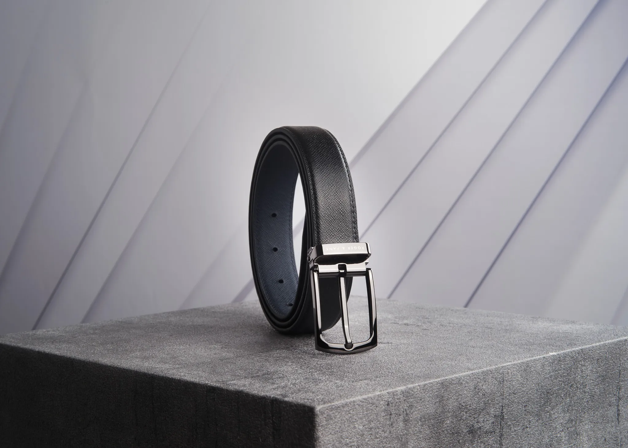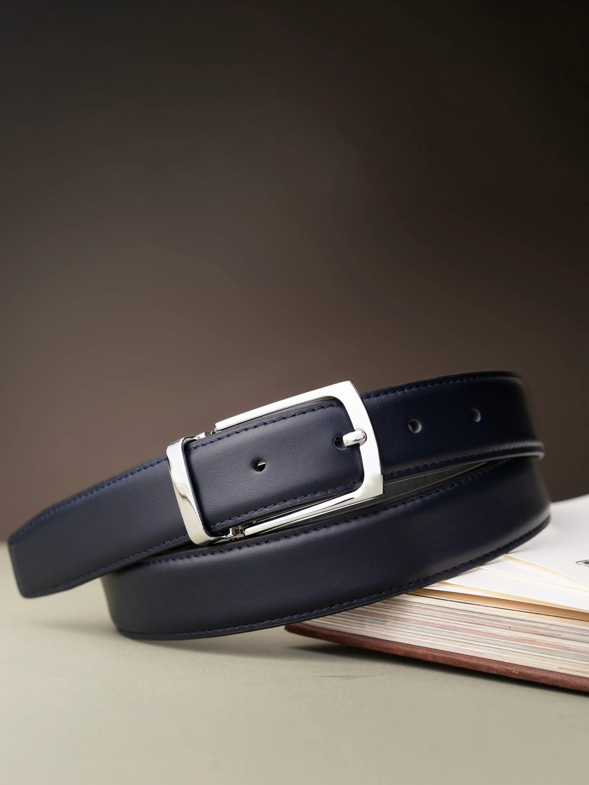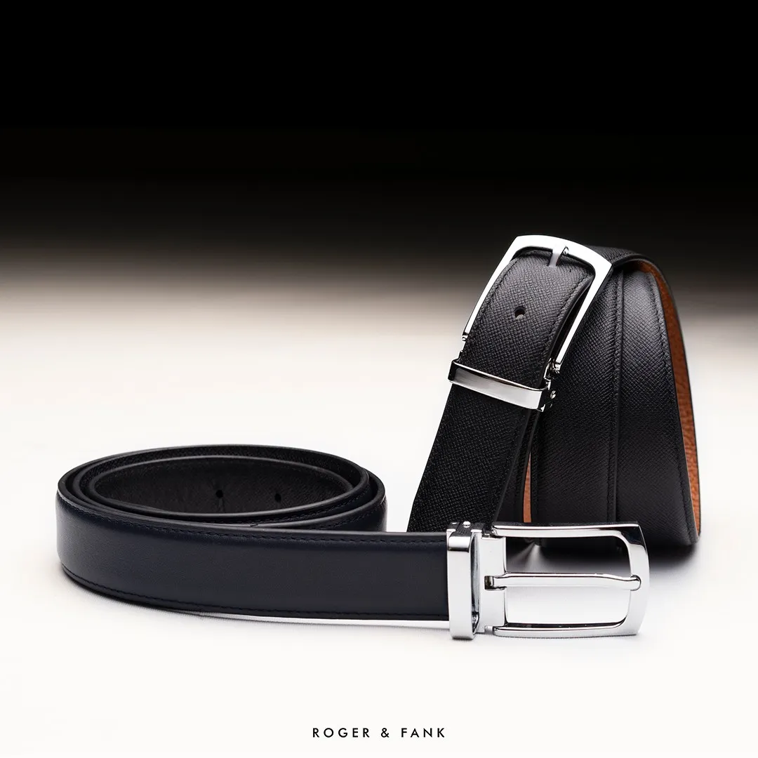 Thắt lưng da 2 mặt đen & xanh 3.5cm – RB249