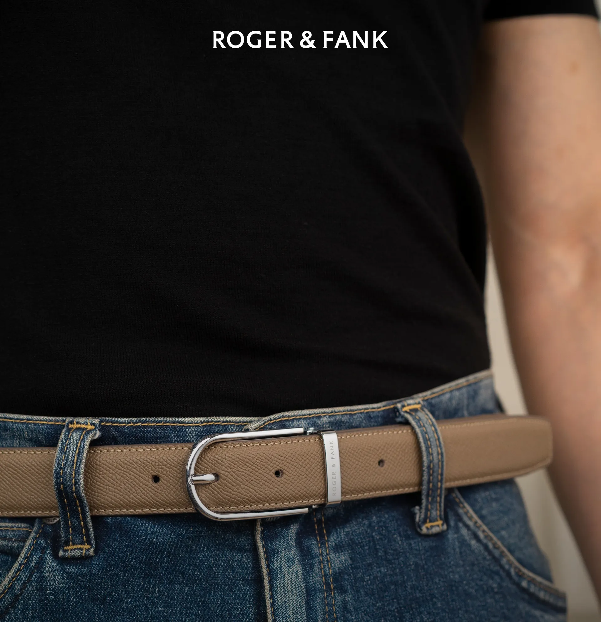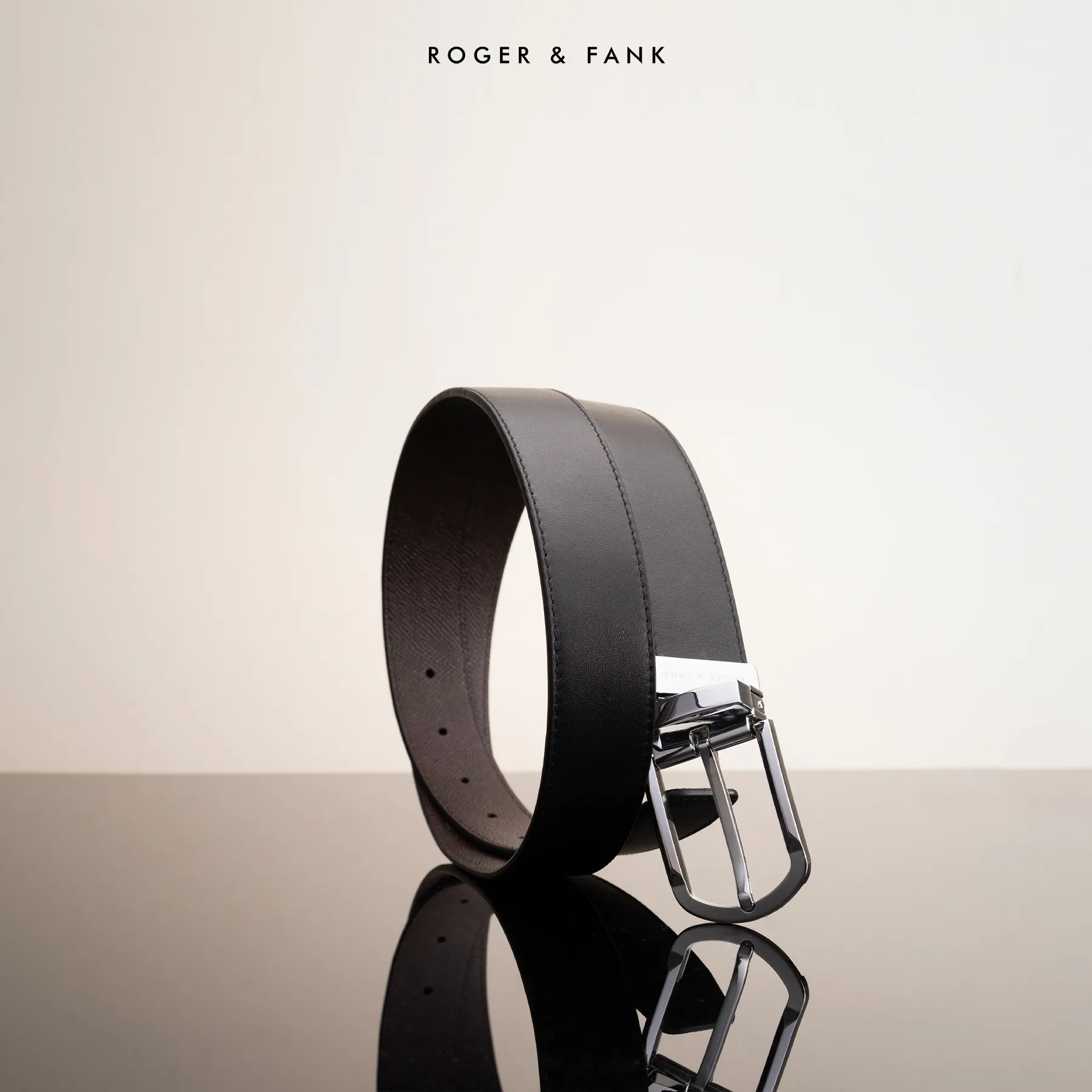 Thắt lưng da 2 mặt đen và bò 3.5cm RB307