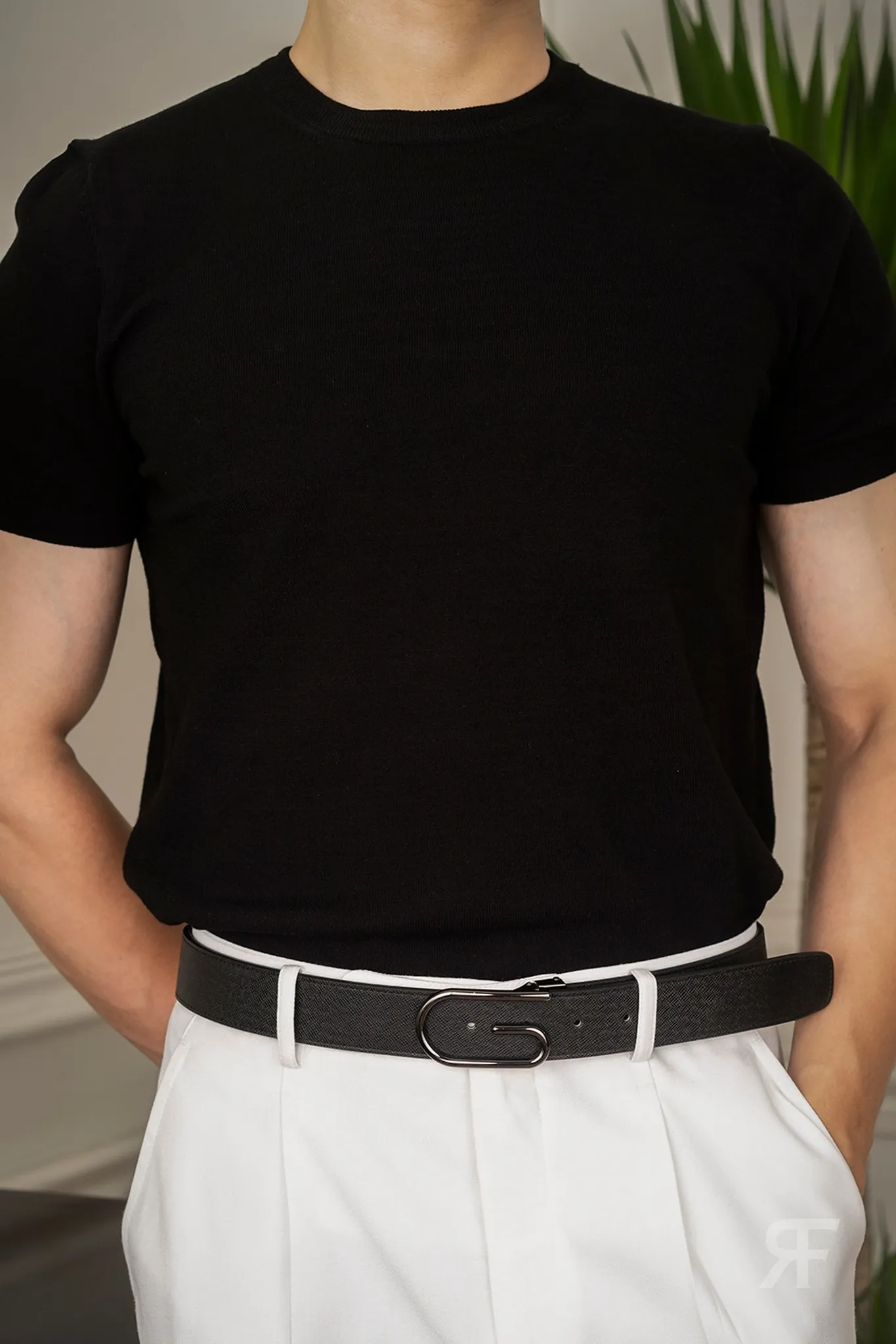 Thắt lưng da 2 mặt đen & x đen 2.8cm – RB501