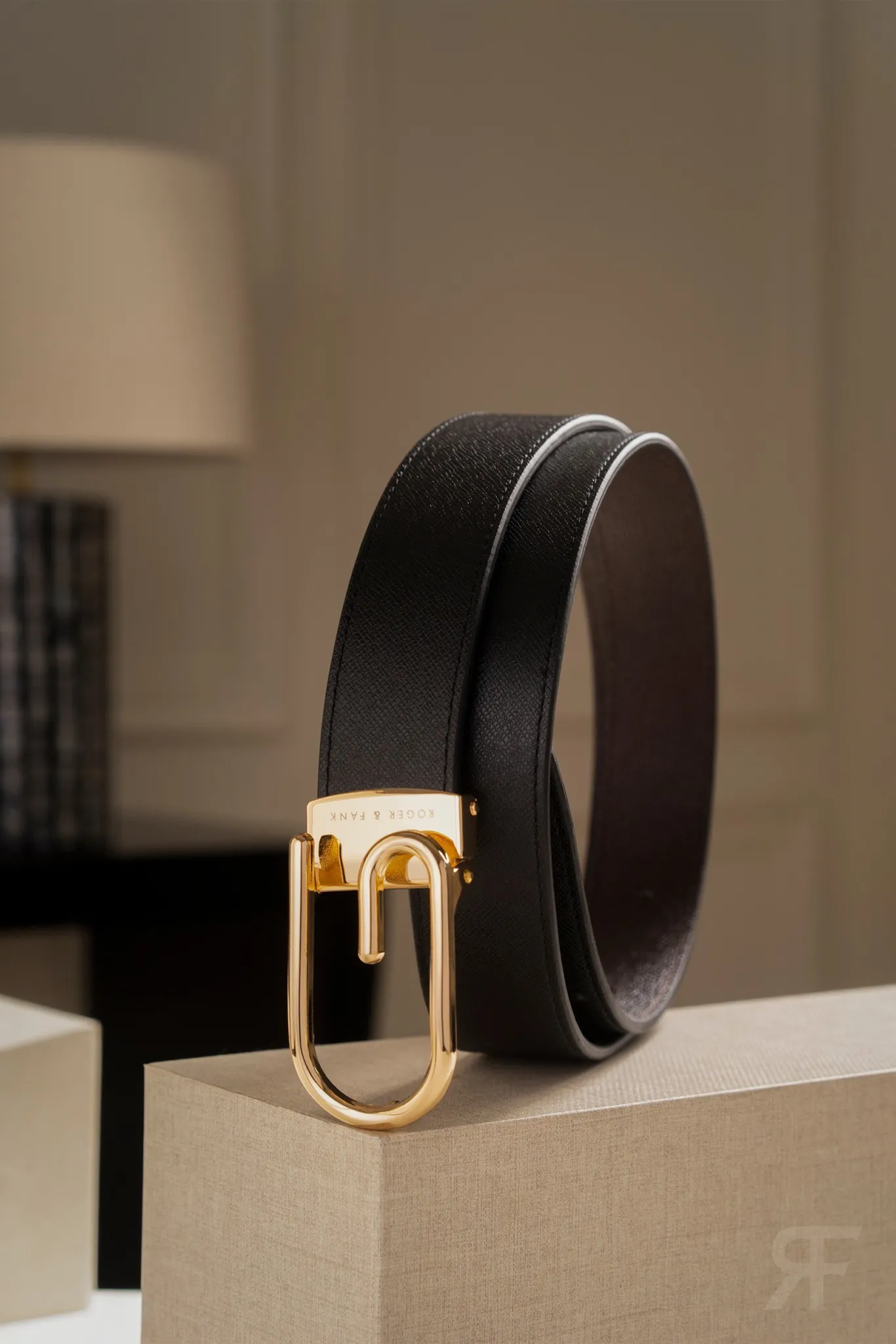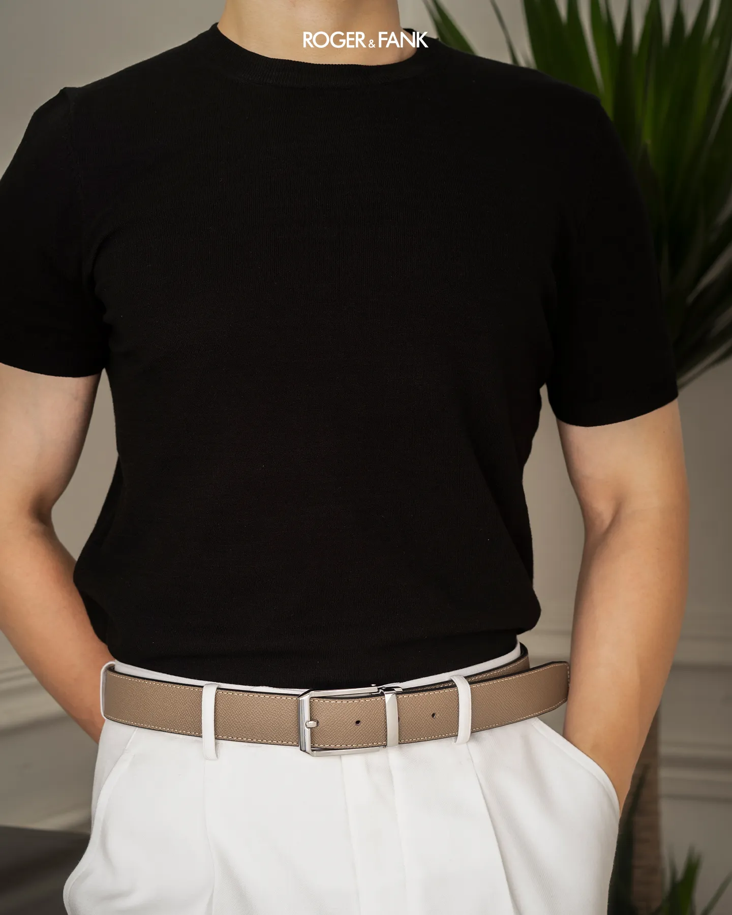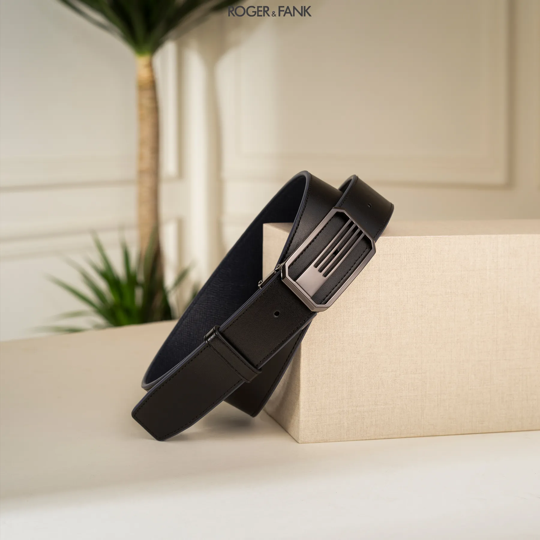 Thắt lưng da 2 mặt đen và bò 3.5cm RB307