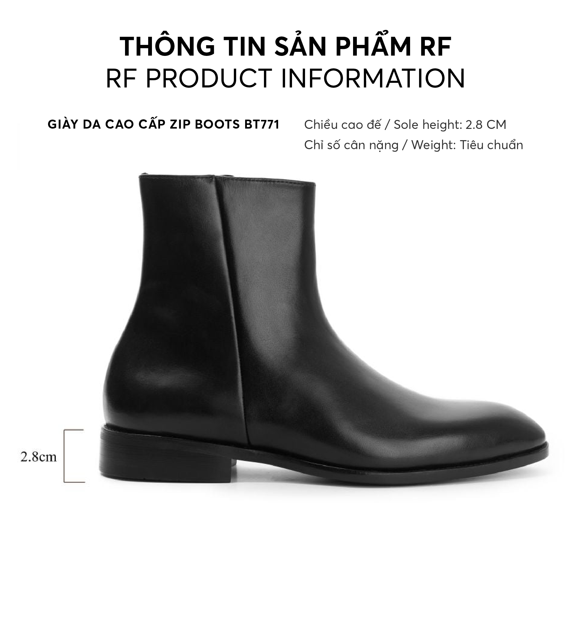 Giày da cao cấp zip boots BT771